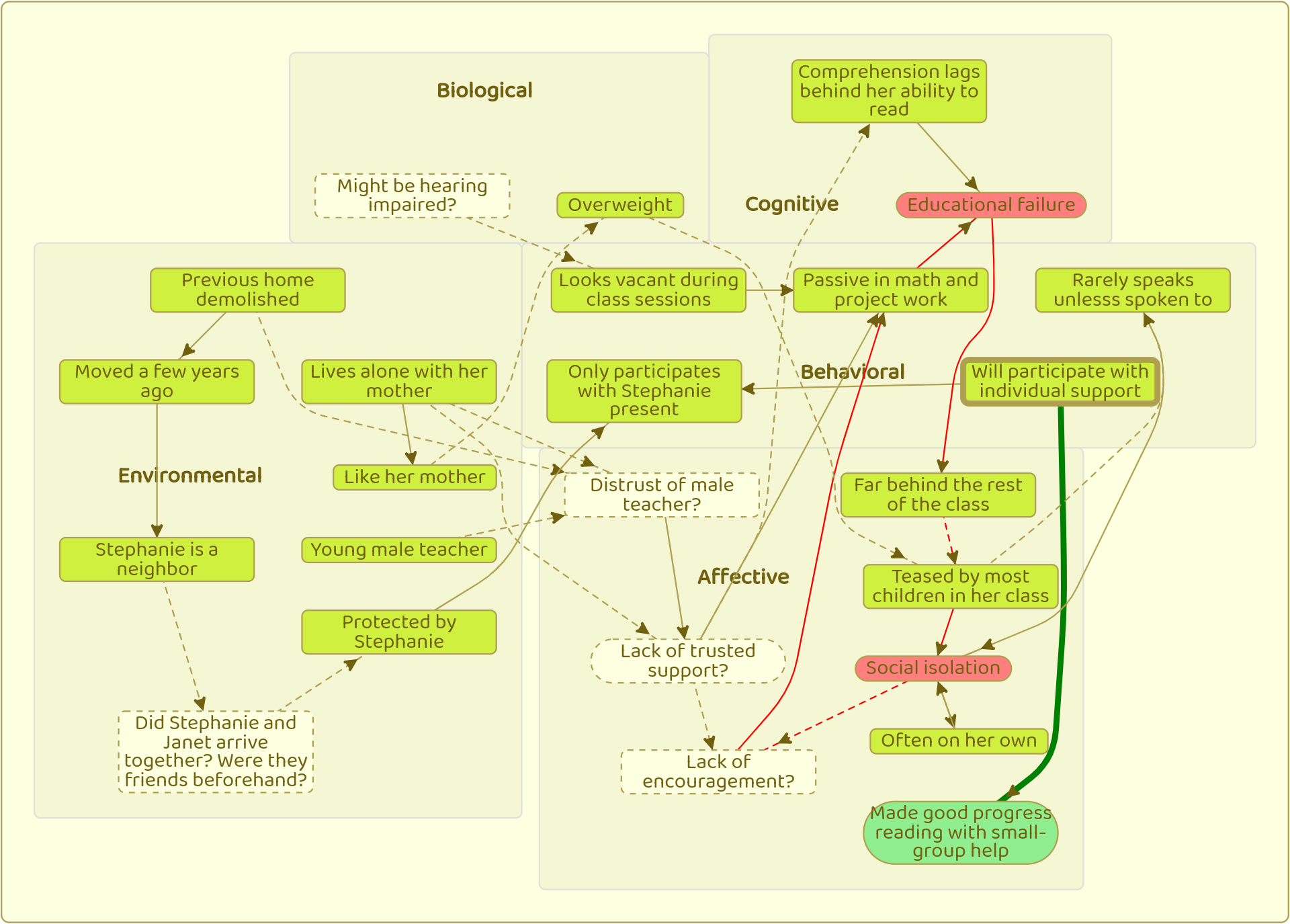 Trace causes to roots, find reinforcing cycles, identify interactions of behavior with the environment, and connect strategies to address problems.